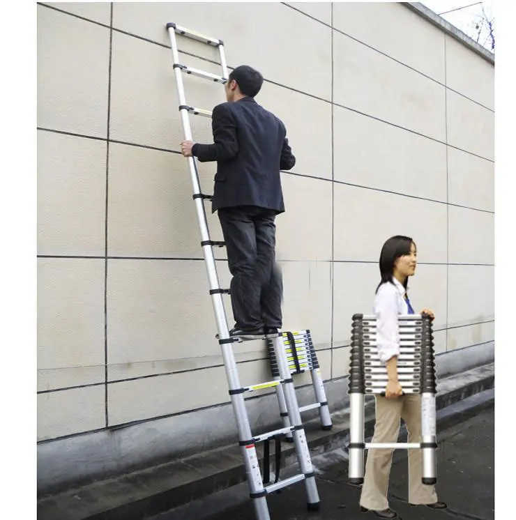 HOT SALE 1pc 3.8M Household Extension Telescopic Ladder Multipurpose Retractable Aluminum Alloy Straight Lad