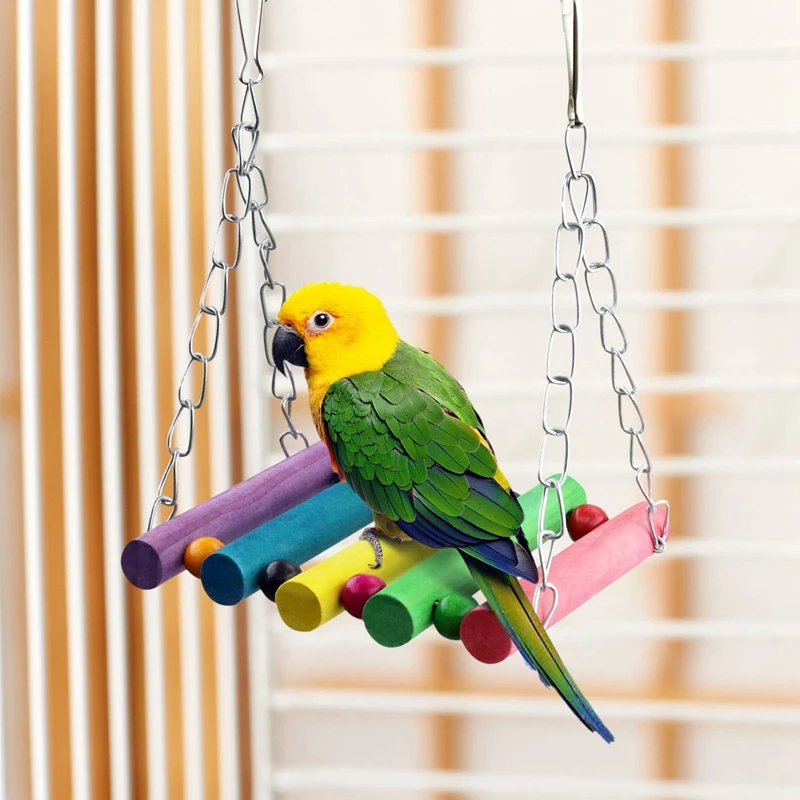 BEST QUALITY 8 Pcs Set Bird Toys Bird Swing Parrot Bed Ladder Hammock Macaws Bite Parakeets Bell Lovebirds Ratta