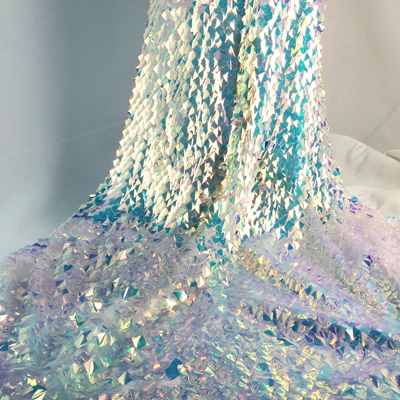 3D Square Diamond Sequin Embroidery Mesh Fabric Bazin Riche Getzner Telas Sequin Fabric Material Te