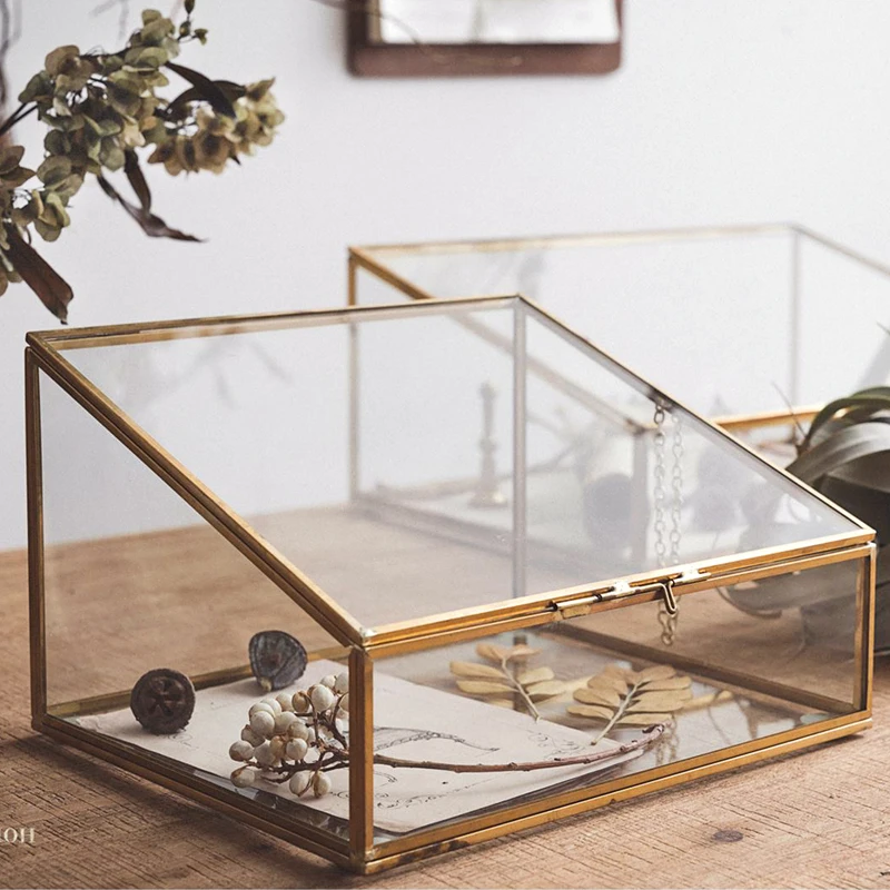 ORIGINAL Glass-Copper Storage Box Ladder Polygon Retro-Bronze Edge Glass Jewelry Box Decoration of Princess
