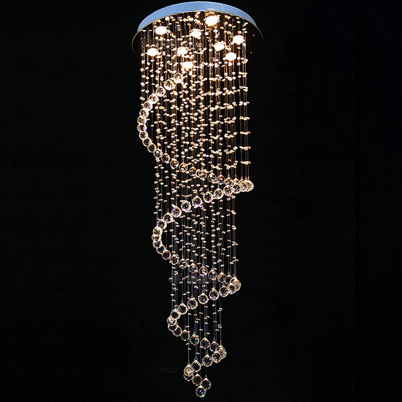 Spiral Design Modern Crystal Chandelier Built-in Mounting Luminary Long Ladder Luxury LED Crystal C