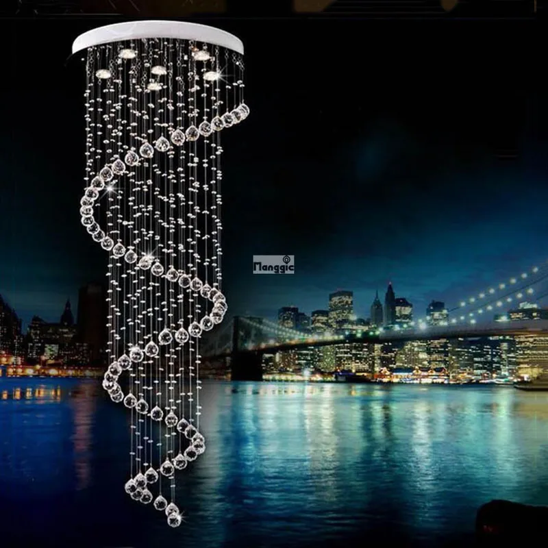 Best Quality Spiral Design Modern Crystal Chandelier Built-in Mounting Luminary Long Ladder Luxury LED Crystal C