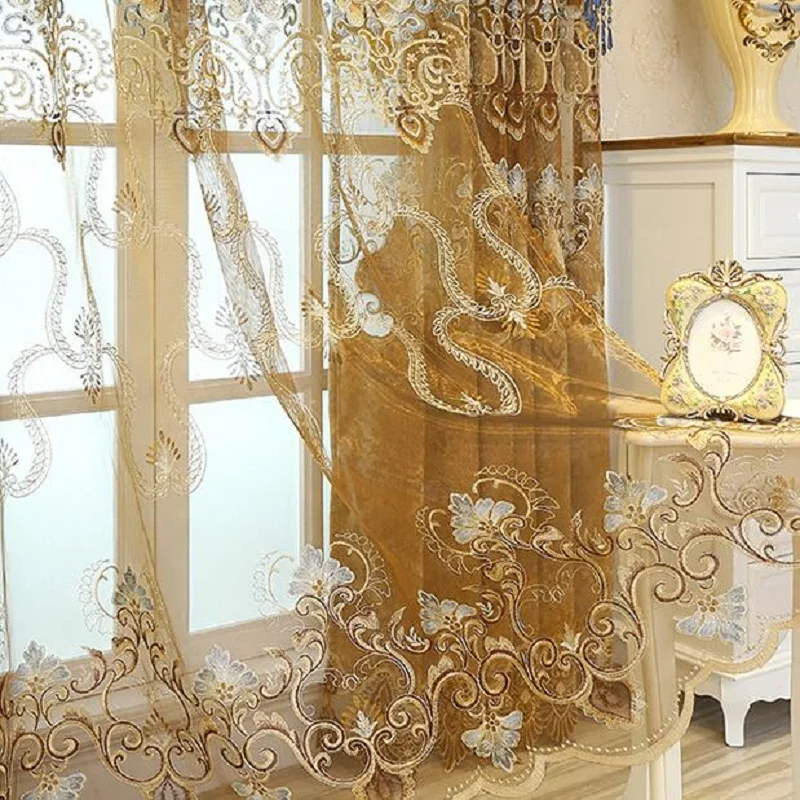 HIGH QUALITY Europe Home Decoration Luxury Valance Curtains For living Room Bedroom Windows Flowers Embroidered