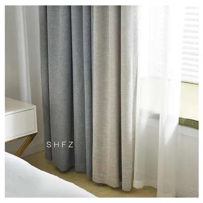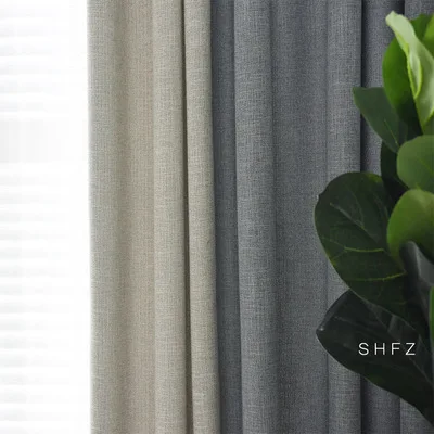 BEST Modern linen simple thick cotton and linen cross coarse hemp texture solid color curtain shade livi