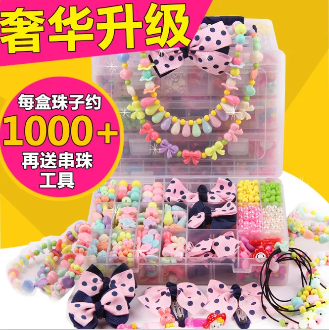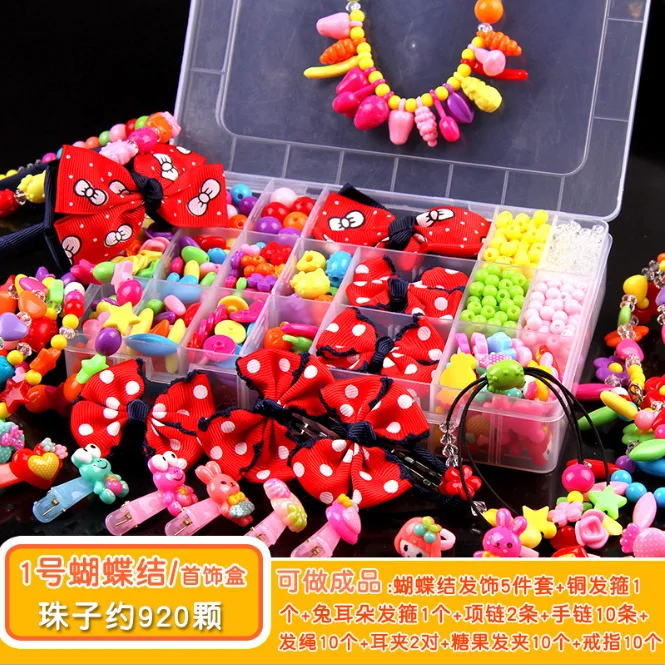 HIGH QUALITY Children Bow Hair Accessories Barrettes DIY Beaded Bracelet Toy Bracelet Material Box 3-7-Year-Old