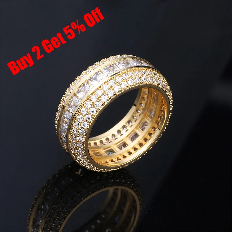 HOT Sale TOPGRILLZ Baguette Zircon Men's Ring Copper Material Charm Gold Silver Color AAA Cubic Zircon Iced