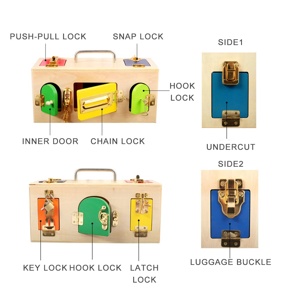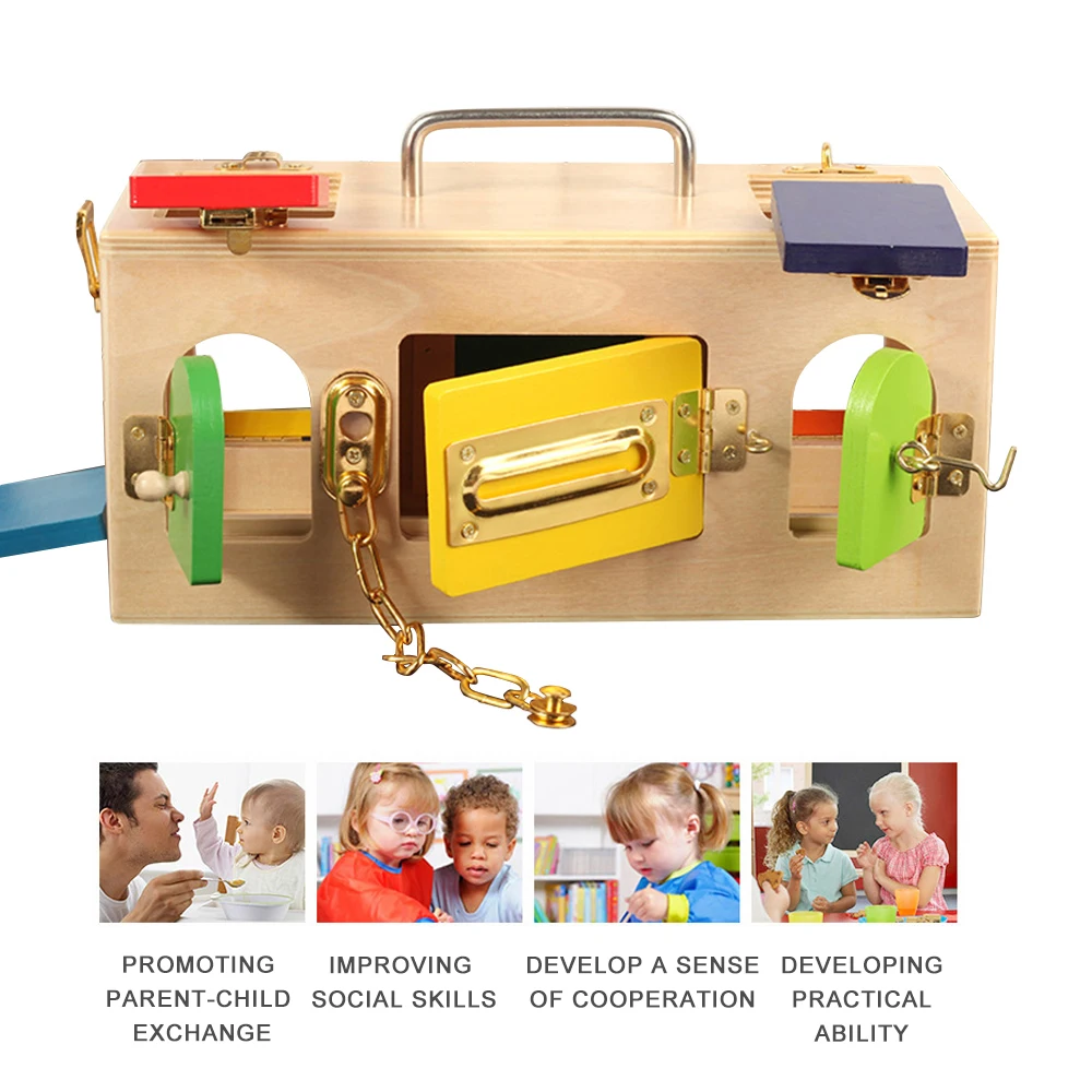 Montessori Kids Toy Small Lock Box 3 Years Sensorial Educational Wooden Toys For Children Montessor